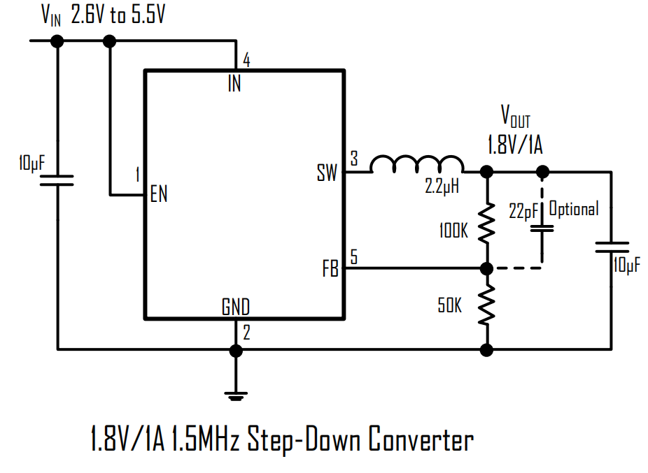 1A、1.5MHz 降压型转换器,采用 SOT23-5 封装