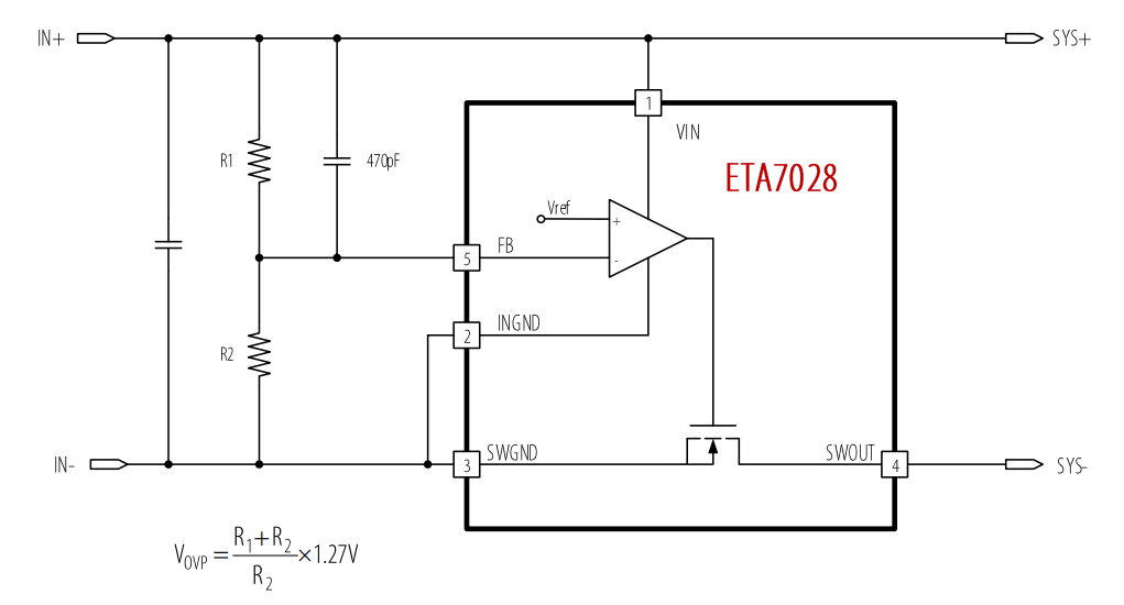 ETA7028是一款低边过压保护(OVP)IC,开关电阻仅为30mohm。它采用低边保护拓扑结构,可确保极低的导通电阻和高保护电压。