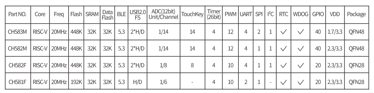 概述 CH583是集成BLE无线通讯的32位RISC微控制器。片上集成2Mbps低功耗蓝牙BLE 通讯模块、2个全速USB主机和设备控制器及收发器、2个SPI、4个串口、ADC、触摸按键检测模块、RTC等丰富的外设资源。